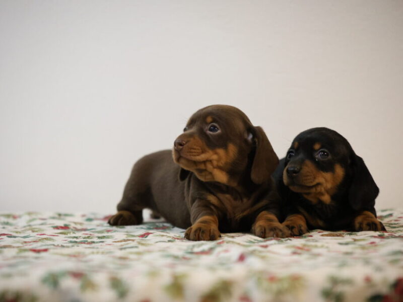 This litter of ACA Mini Dachshund puppies born November 18, 2025, should be ready for new homes by January 13, 2026. There are 2 puppies still available for adoption! (Click on photos below for more information)