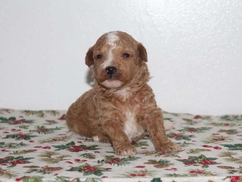 is a Apricot & White female Mini Poodle,